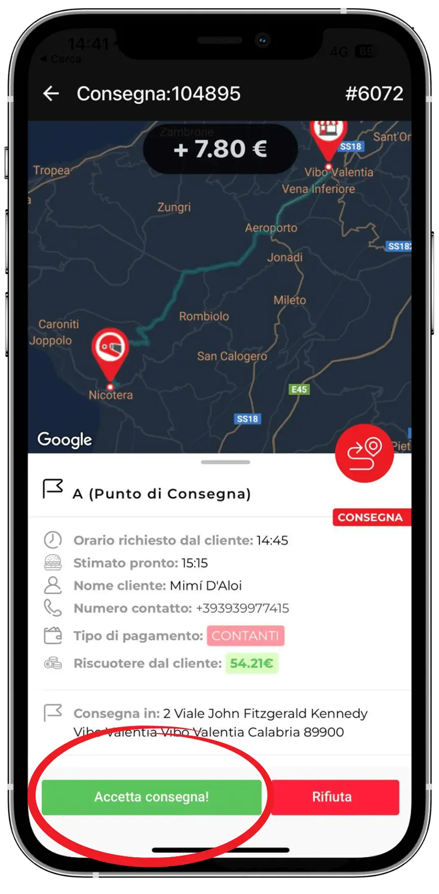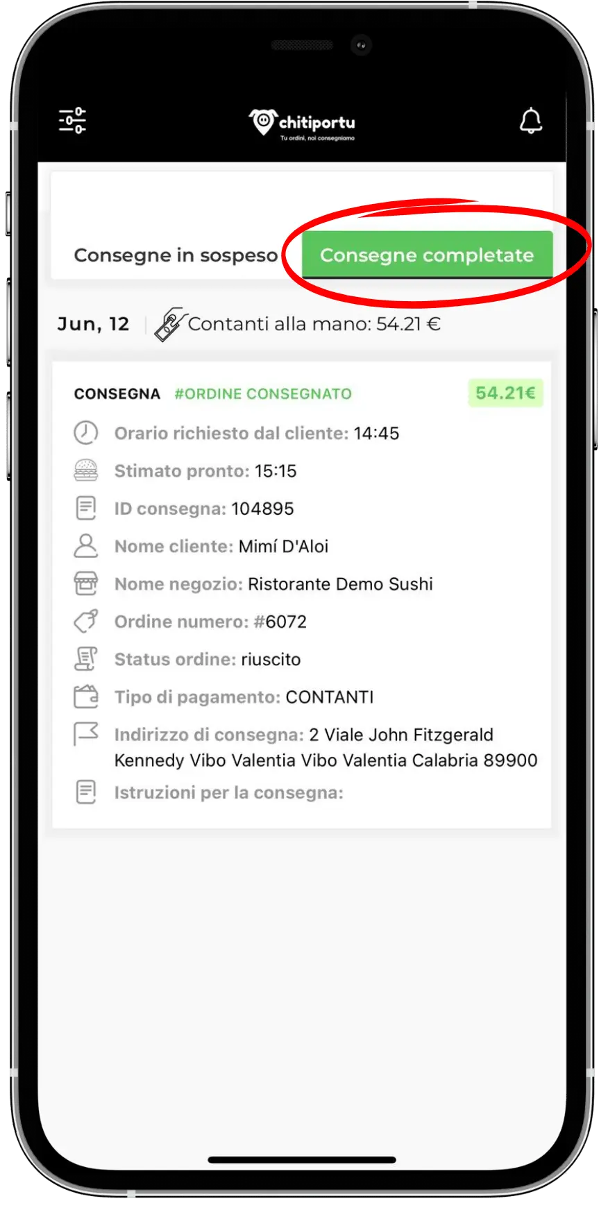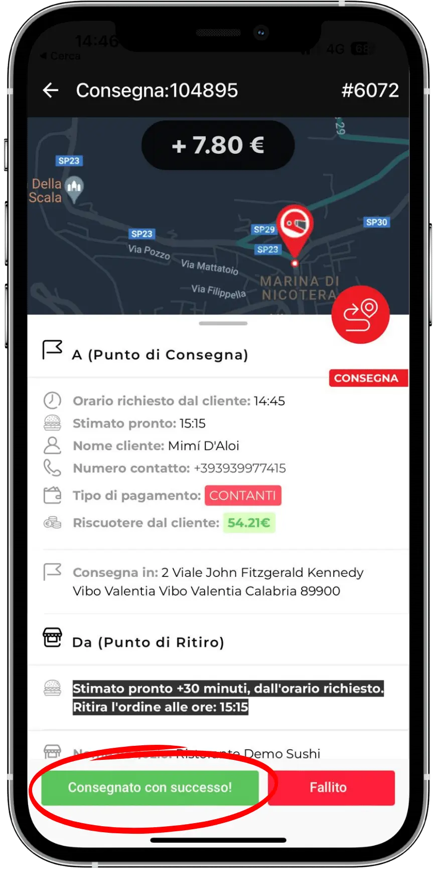 Verás todos los detalles del pedido y la información de entrega, llega al cliente y concluye haciendo clic en el botón. ¡Ahora espera el próximo pedido!