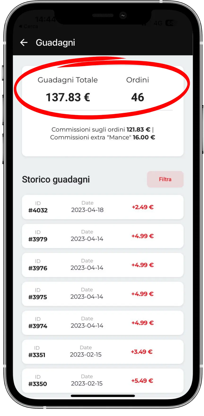 Podrás ver los detalles de tus ganancias y solicitar un retiro en cualquier momento.